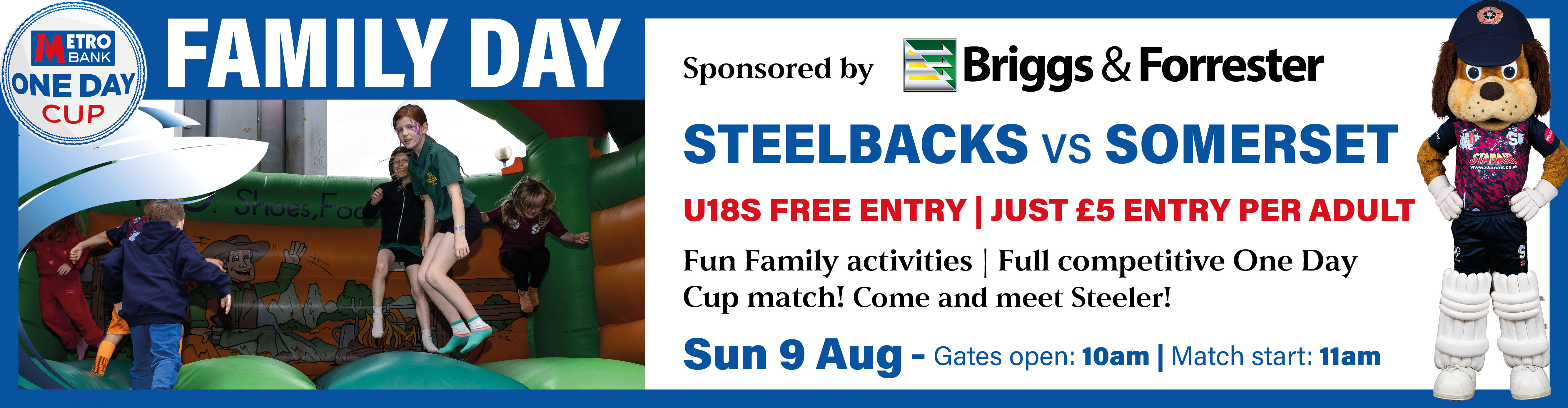 With big thanks to our sponsors, Briggs and Forrester, Northamptonshire’s final home fixture of the Metro Bank One-Day Cup campaign is on our Family Day! Watch the Steelbacks take on Somerset at Wantage Road and enjoy a wonderful and affordable family occasion.